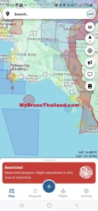 Natürlich gibt es auch in Thailand Regeln beim Fliegen einer Drohne, die eingehalten werden müssen. Diese findest du HIER beschrieben. Außerdem gibt es Zonen, in denen nicht geflogen werden darf: Dokument mit allen verbotenen Zonen (Städte, Militäranlagen, Flughäfen).